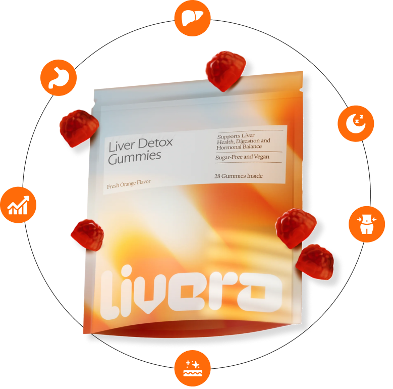 Livera gummies support liver health through natural, clinically-studied ingredients for: